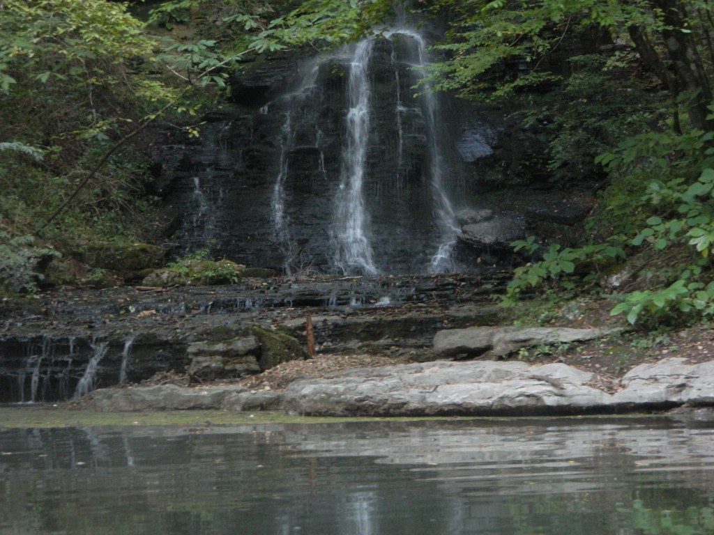 As we explored the area, we found several more little falls flowing from the rocks into the lake below, and we finally settled into casting and trying to catch some bass with the calming sounds of flowing water all around us.